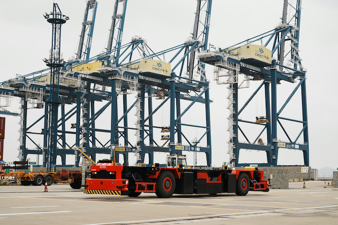 2022年2月,大榭招商国际码头与友道智途签订战略合作,双方合力探索智慧港口建设中智能化水平转运的前沿技术和创新运营模式。友道智途自主研发的全新无人纯电智能转运车(以下简称AIV)随即进入大榭国际招商码头展开测试联调。据了解,AIV在港区内将进行基础指标测试、单车测试、工作流程测试以及多车流程测试的一系列严格测试。目前已圆满完成34项基础指标测试和16项的单车测试,并在规控、感知、安全方面表现突出。