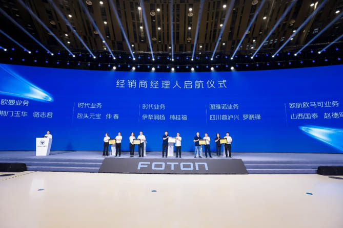 为进行业务精准赋能,助力经销商团队建设与能力提升,加速合作伙伴生态建设、模式创新,聚焦新重业务拓展;同时,丰富福田营销人才职业发展通道,通过“经理人+合伙人”等模式,培养复合型营销战将。会上,福田汽车常务副总经理鹿政华介绍了经销商职业经理人计划,并与首批结对经销商和经理人共同登台进行了启航仪式。未来,福田汽车与经销商形成强大合力,共同推进“一擎两翼”战略和理论创新在市场终端的切实落地,助力经销商伙伴以更广阔的视野洞察市场趋势,紧抓市场新机遇,实现销量突破。