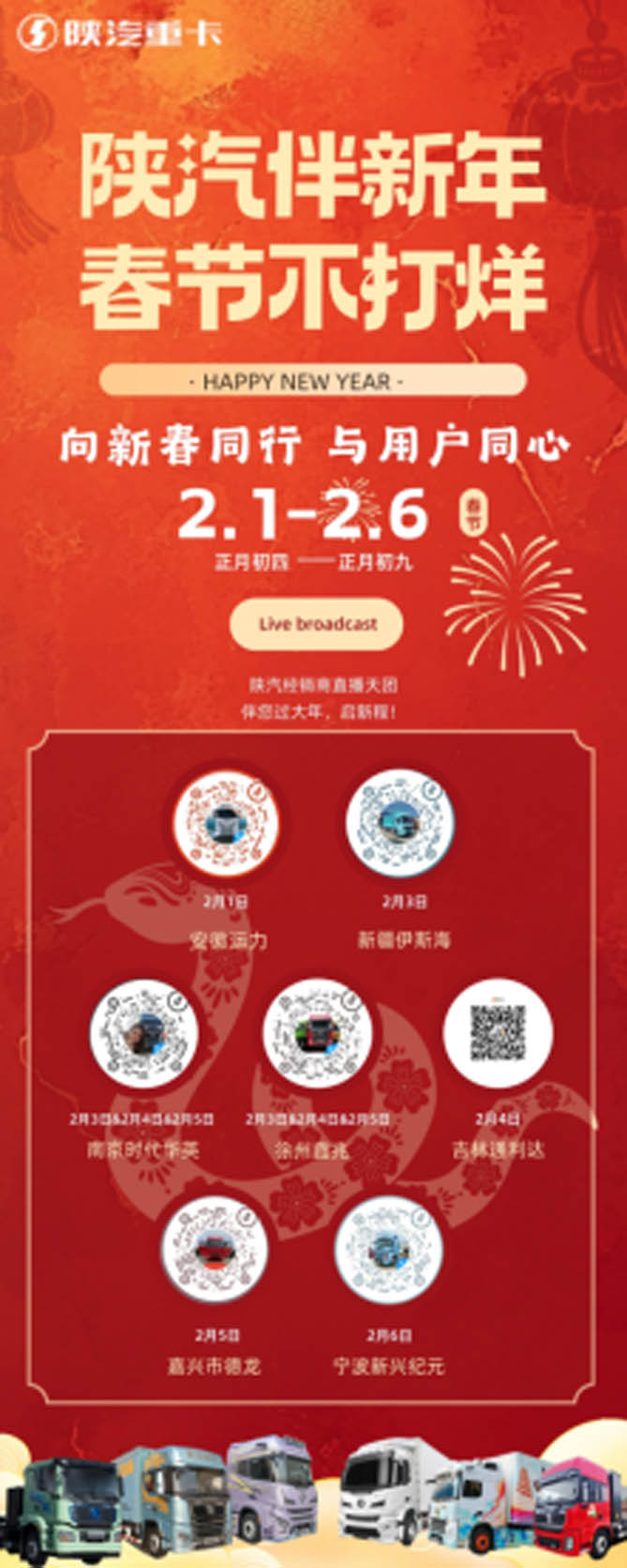 金蛇狂舞,春风送暖,又是一年新春到。大红灯笼高高挂起,家家户户洋溢着节日的喜庆,如果要评选最敬业的重卡品牌,那一定非陕汽重卡莫属。作为商用车行业的领先品牌,陕汽重卡始终以客户为中心,不断追求卓越与创新,在这个举国同庆、万家灯火共团圆的春节,更是精心准备了一系列的新春盛宴,为客户送上一份份满载温情与祝福的新春大礼。