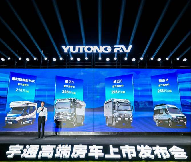 “宇”您一起,奔驰天下。8月10日晚,“心无界,行无疆”宇通高端房车上市发布会在郑州水木芳华房车营地举行。会上,宇通房车与奔驰强强联合,推出了星迈S、威迈E、骏迈M、雍和旗舰版MAX四款高端房车,致力于为用户创造多场景的豪华越野旅居体验。其中,奔驰Atego底盘是国内市场首发,并首次应用于宇通威迈E。