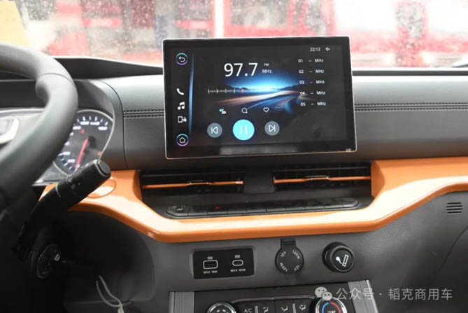 领跑L3-2.0L双燃料车型,得益于1730mm宽度的驾驶室,内部空间更大更宽敞,内饰采用全包软装,双色撞色点缀设计。驾驶台采用贯通式设计,宽大的驾驶台可放一些货运票据,非常方便。