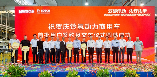 国务院办公厅发布的《新能源汽车产业发展规划(2021—2035年)》中明确提出“力争经过15年的持续努力,燃料电池汽车实现商业化应用”。秉持这一共同愿景,博世和庆铃于今年3月在重庆正式合资成立了博世氢动力系统(重庆)有限公司,专注于开发、生产先进的氢动力系统。基于发展氢动力技术的坚定决心和各自专业强项,在双方的通力协作下,短短不到半年时间,第一批匹配博世氢动力系统的庆铃商用车于近日正式下线,并于今日成功交付给首批行业客户。这也是重庆市首批投入运营的氢动力系统商用车,是博世在中国推动氢动力技术商业化的又一里程碑。