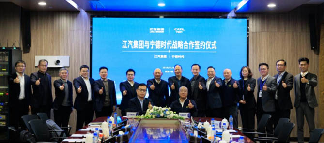 2024年1月,江淮汽车与宁德时代正式签署战略合作协议。合作包括动力电池供应、换电技术导入、新技术开发和应用。