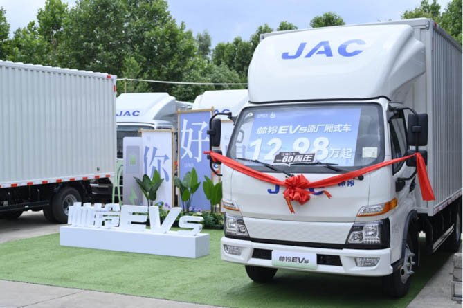“帅铃EV5采用著名品牌81kWh电池,CHTC等速法续航里程达400km,标载市区工况下续航里程240km+,重载市区和省道下续航里程200km+,同电量行驶更远、能耗更低。”动力电池厂家介绍了其领先的电池性能和续航能力,江淮1卡新能源产品技术人员详细介绍了其产品价值。