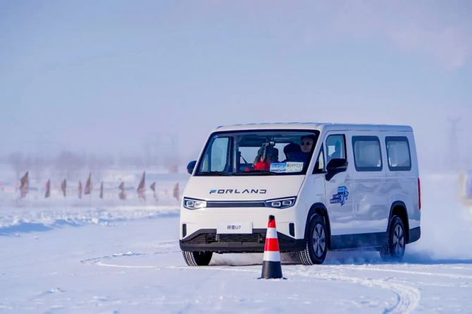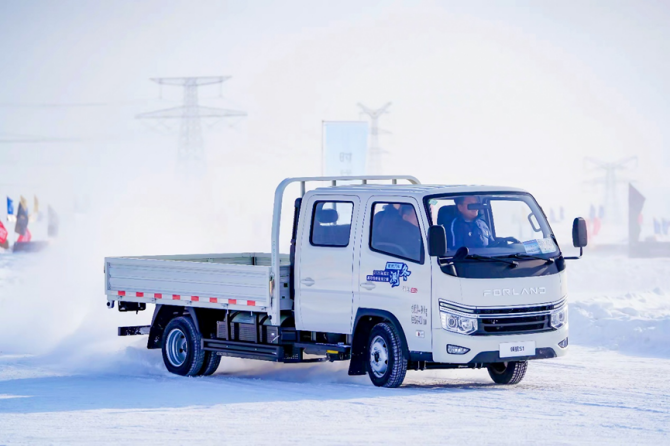 在连续、变速的制动、环路测试中,祥菱U7动力输出平稳,启停精准,转向轻盈。事实上,这样的卓越表现得益于其“U质”的动力系统。首先补能方面可圈可点,其搭载的宁德时代电池在日常运营环境下通过2C超快充仅16分钟充电即可达到30%-80%的蓄能,此次在极寒条件下充电效率依然在线。其次,整车的液冷液热系统可以保持-35℃至65℃的超宽工作温域,确保电池在极端低温下活性稳定,无疑为城配物流用户的冬季出勤率带来极大保障。实测中,匹配福田自研电池系统的祥菱U7,在低温环境下表现功率依旧出色,同时具备更“U越”的六合一动力总成优势,以及EHB能量回收功能和超低风阻系数,进而保持了超低能耗,这些技术及配置是其参与冰雪综合性能测试的底气。