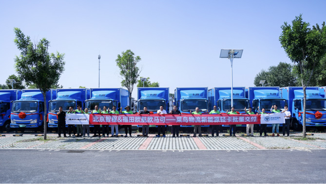 【北京智程&福田欧马可向菜鸟物流交付欧马可智蓝新能源轻卡】
