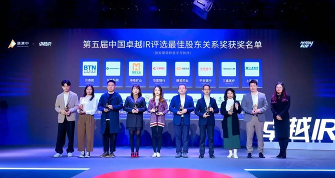 12月29日,由路演中及卓越IR主办的“第五届中国卓越IR评选”结果出炉。作为国内投资者关系领域最具影响力的奖项之一,“中国卓越IR年度评选” 聚焦上市公司投资者关系工作一线从业人员,以表彰优秀的上市公司及IR工作者为推动整个行业创新与高效做出的贡献。