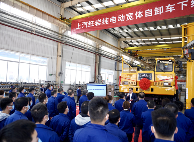 4月20日,上汽红岩最新研发的“金刚矿霸”纯电动宽体自卸车在重庆正式下线,以其“最大承载、最强动力、最长续航”助力绿色矿山运输高质量发展。