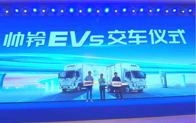 在活动现场,江淮1卡帅铃EV5标准货厢产品12.98万元的售价,也得到了上海区域客户的积极响应。大客户订单签约、新能源商用车推广倡议书签署、交车仪式等环节,充分彰显了客户对帅铃EV5产品和价值的认可。