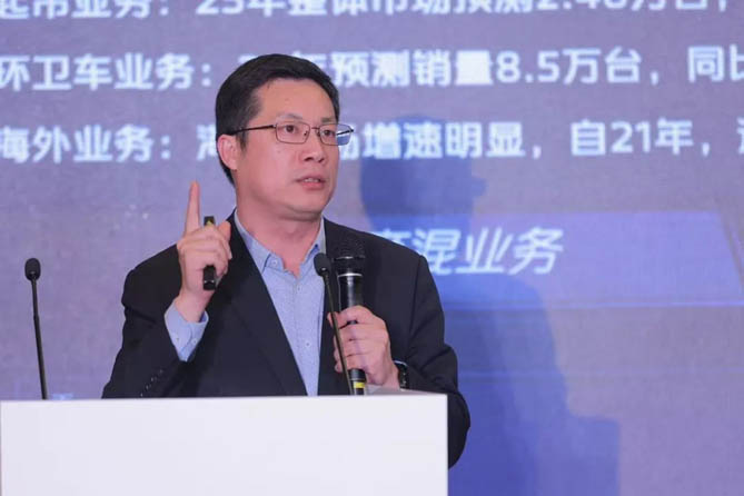 随后,福田雷萨党委副书记、常务副总经理兼营销公司总经理兼重机业务总监韩绍增带来了《深化模式变革 升级伙伴关系》的主题报告。他深入洞察了当前市场的动态与趋势,全面剖析了行业竞争格局。韩绍增强调,在新的发展阶段,福田雷萨必须深化模式变革,积极探索创新合作路径。通过不断升级伙伴关系,共同应对挑战,把握机遇。他指出,只有携手共进,才能在激烈的市场竞争中立于不败之地,为实现共同的发展目标而努力奋斗。