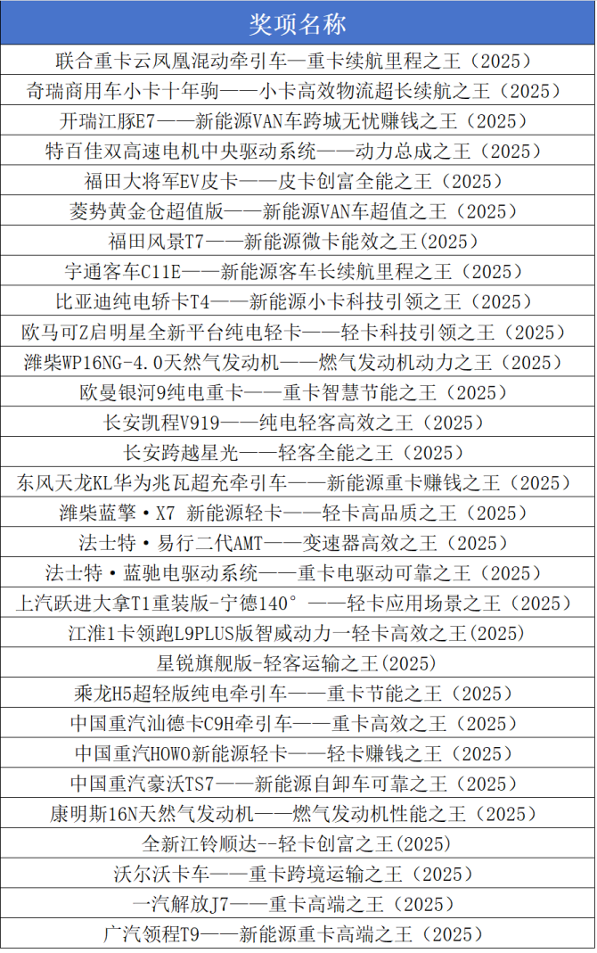 2025年重卡领域,燃油车型依然担纲主力,在高端市场、跨境运输领域,努力为用户创造更大价值;燃气重卡销量前低后高,大马力燃气重卡性能提升的同时、气耗进一步降低;新能源重卡风起云涌,大电量和快充、超充技术加持下,电动重卡续航里程、补能效率再创新高!获奖纪录里既有连续月销超1000辆的高端市场突破;也肯定了TCO成本下探;重卡动力电池电量,创造了从10%到80%充电仅需不到20分钟的惊人纪录!