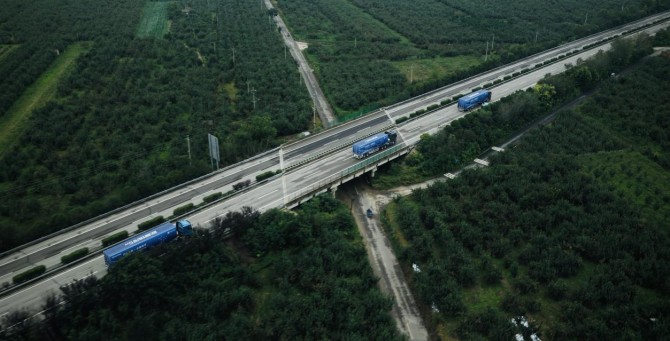 过运城进入关中平原,路线转向铜川、宝鸡后,道路特征愈发鲜明:国道与高速出入口交汇、货运车辆与城市车流交织,频繁的路口启停、短途转向成为常态,三款车型的场景优势也更为突出。欧曼银河混动重卡电驱模式起步响应迅速,转向精准可控,在路中穿梭毫无滞涩,与枢纽城市“短途接驳、高频转向”的物流需求高度适配,且能实现“零油耗”。而欧曼银河7燃气车无论在山区还是平原道路,均能保持充沛动力输出,其更优的节气技术尽显“降本增效”的运输实力,可轻松应对各类复杂路况,保障运输效益。